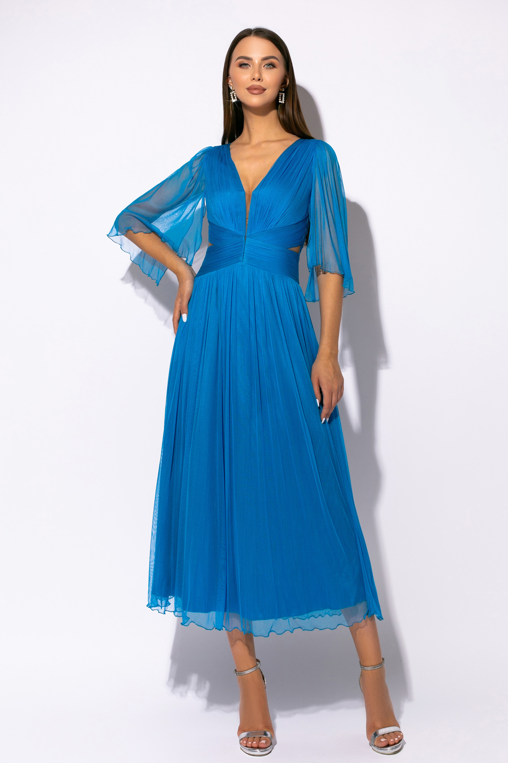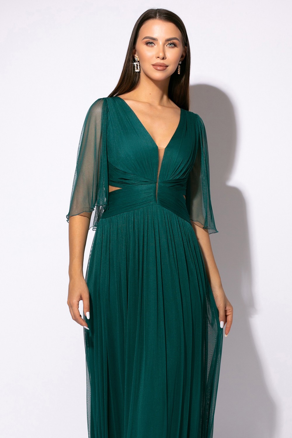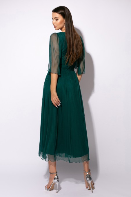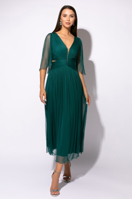 Modelul poartă măsură 40, dimensiuni model: 1,74 cm înălțime, 88 cm bust, 63 cm talie, 94 cm sold