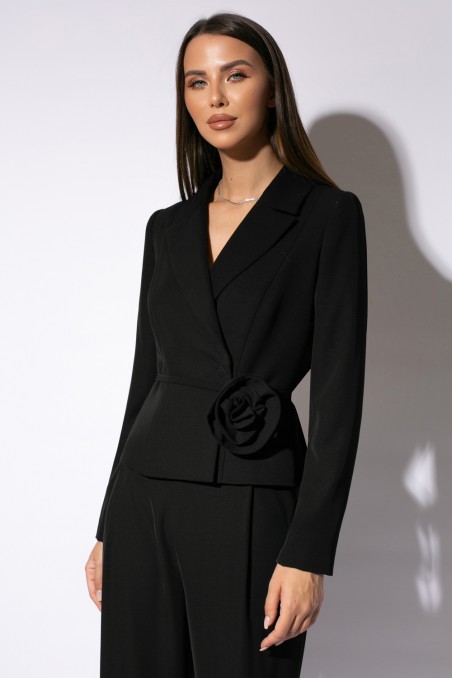 Sacoul are inchidere cu capsa si snur subtire tip curea si floare ornamentala maxi