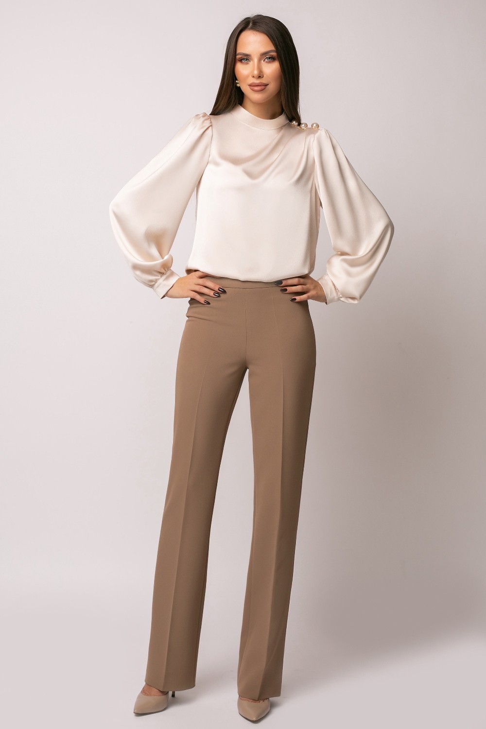 Produsele Ginette sunt fabricate în România Modelul poarta masura 38, dimensiuni model: 1,74 cm inaltime, 88 cm bust, 63 cm talie, 94 cm sold