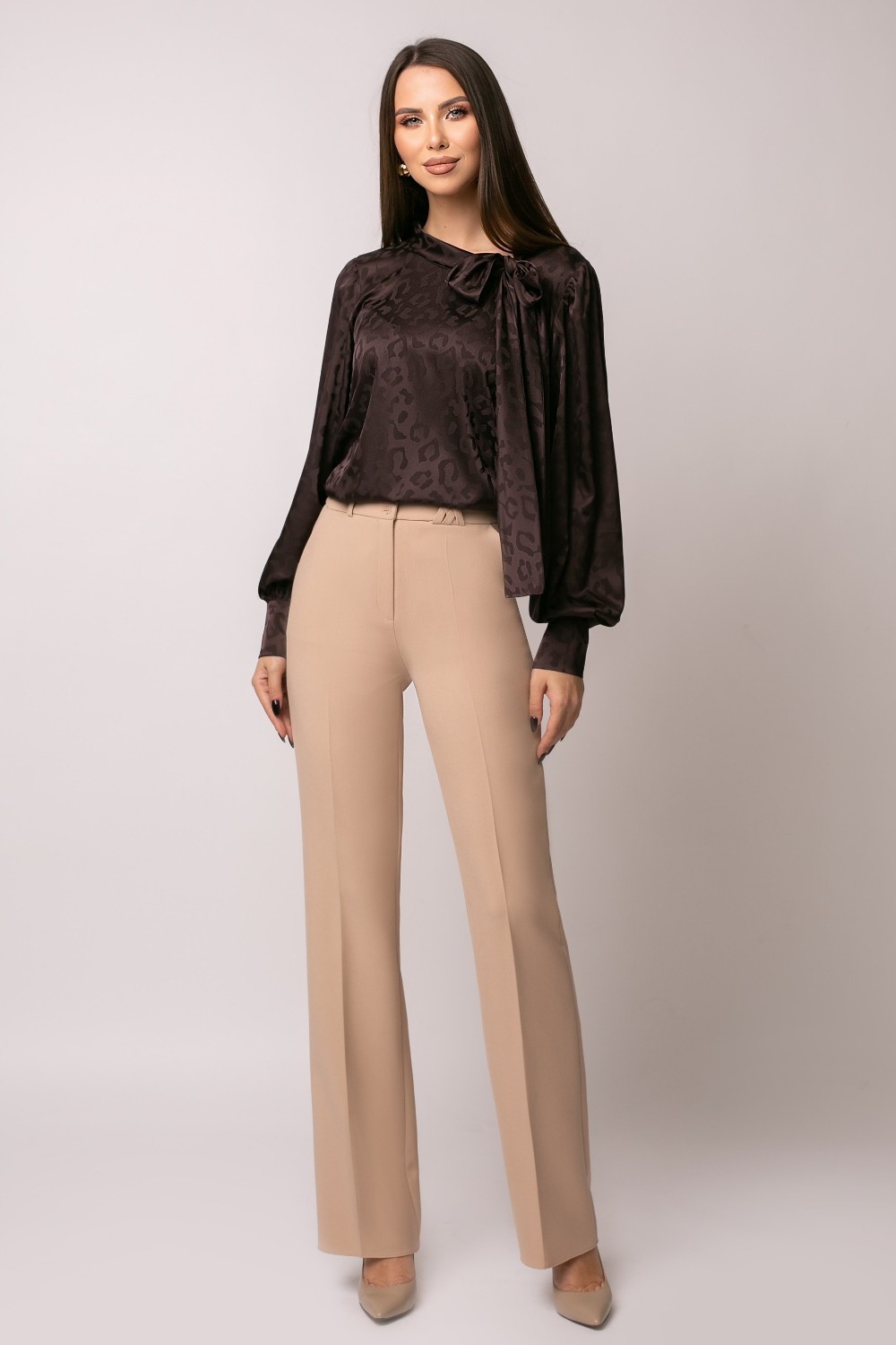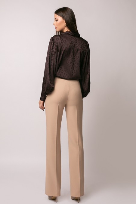 Pantaloni din stofa usor elastica Inchidere laterala cu fermoar Croi evazat