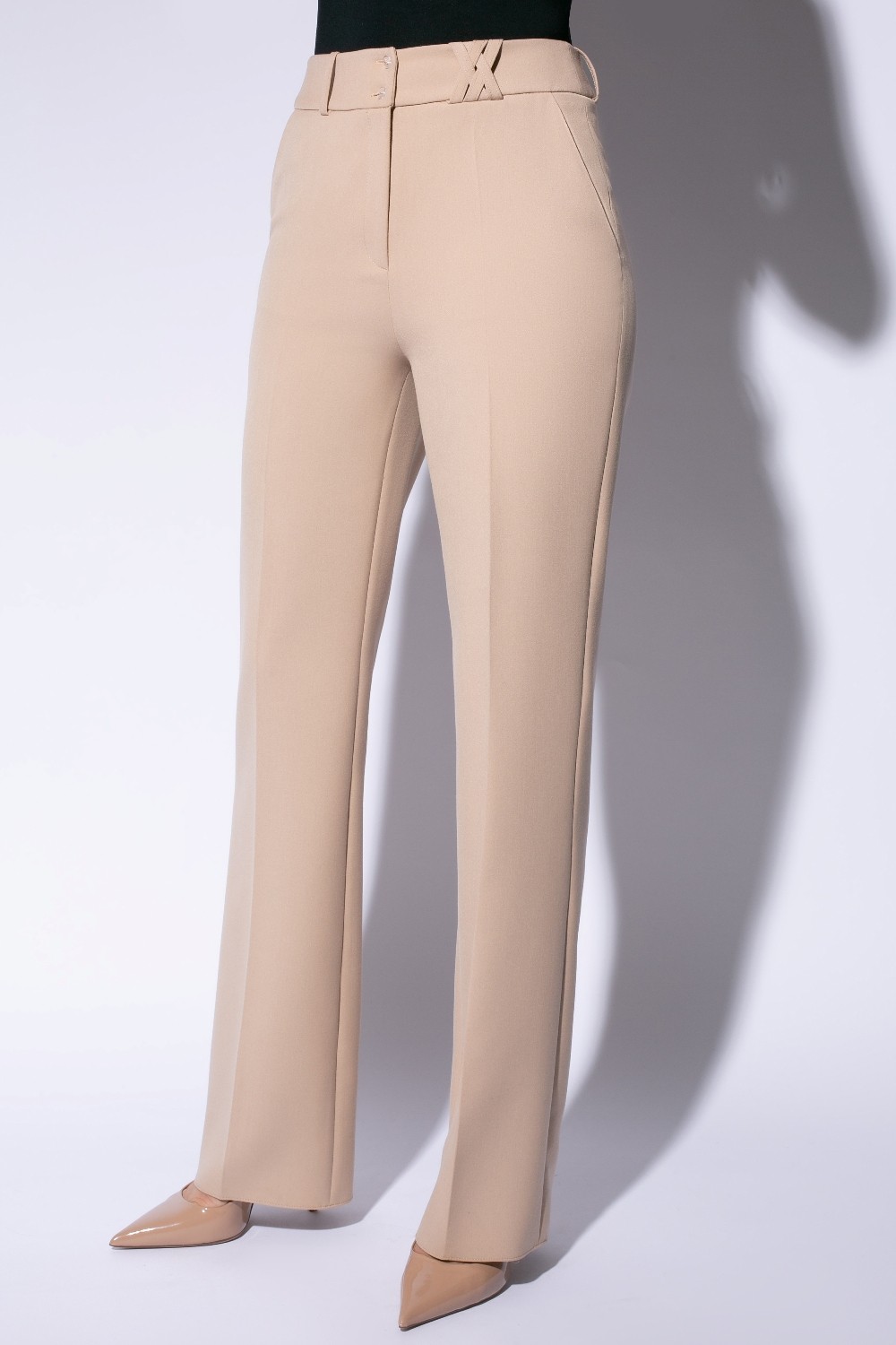 Pantaloni din stofa usor elastica Inchidere laterala cu fermoar Croi evazat