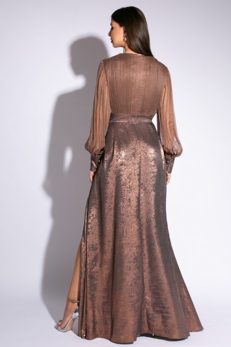 Croi cambrat cu poala larga plisata si crepeu in lateral fata