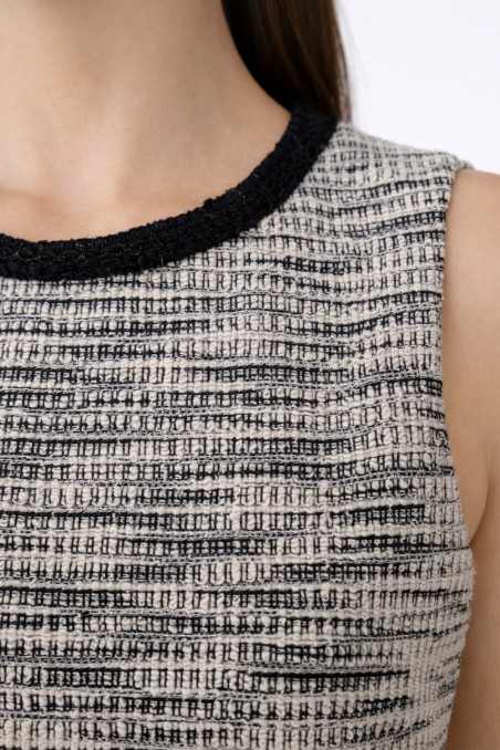 Rochie tip sarafan din stofa alb-negru cu aspect bucle si fir argintiu