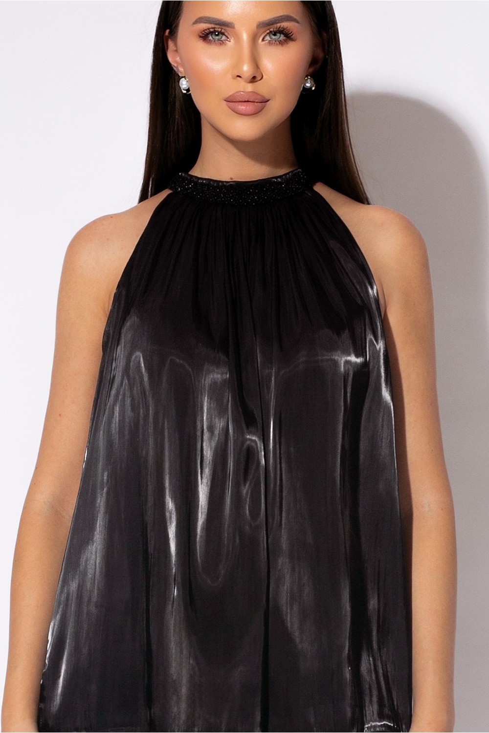 Top lejer, cu decolteu la baza gâtului decorat cu mărgele