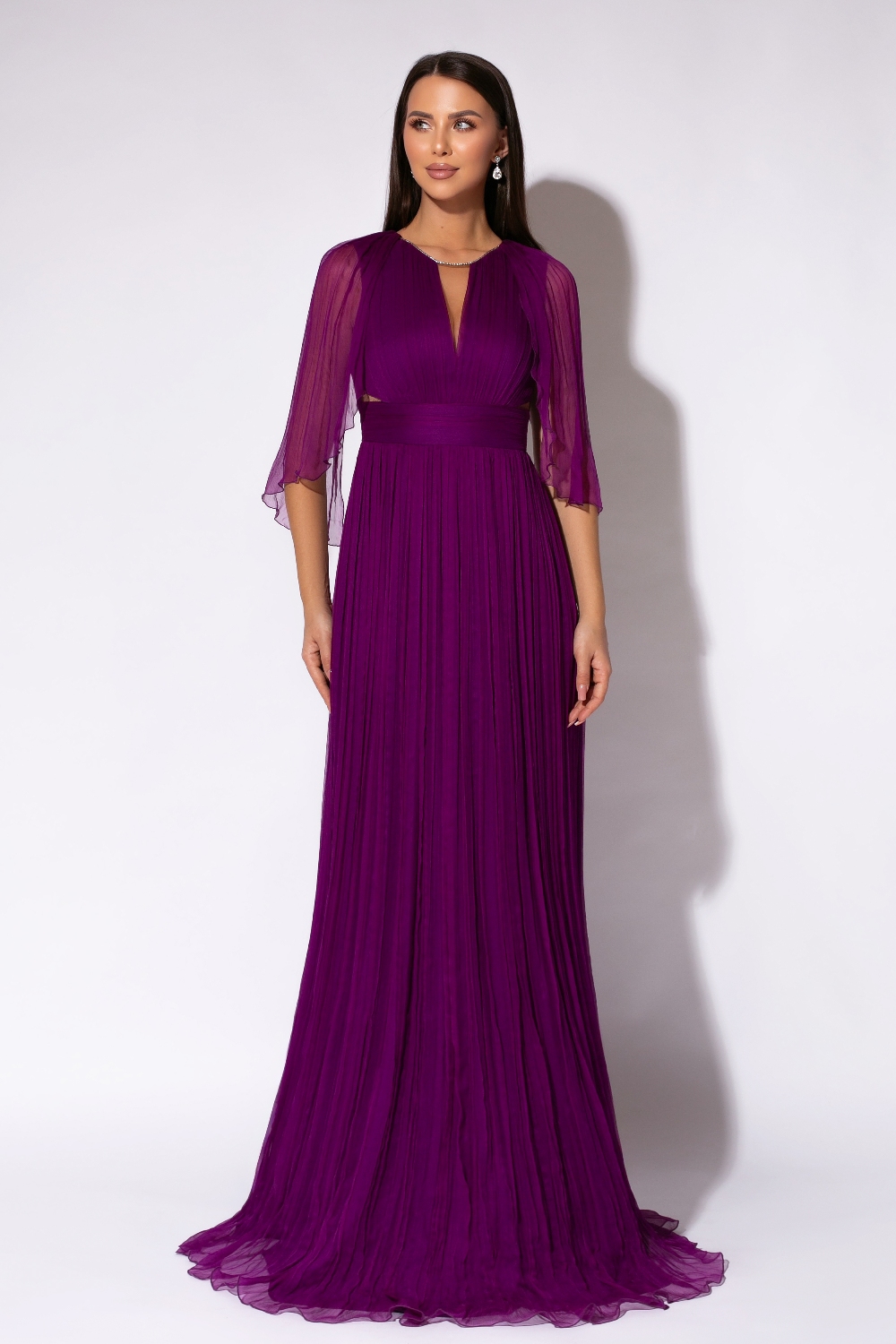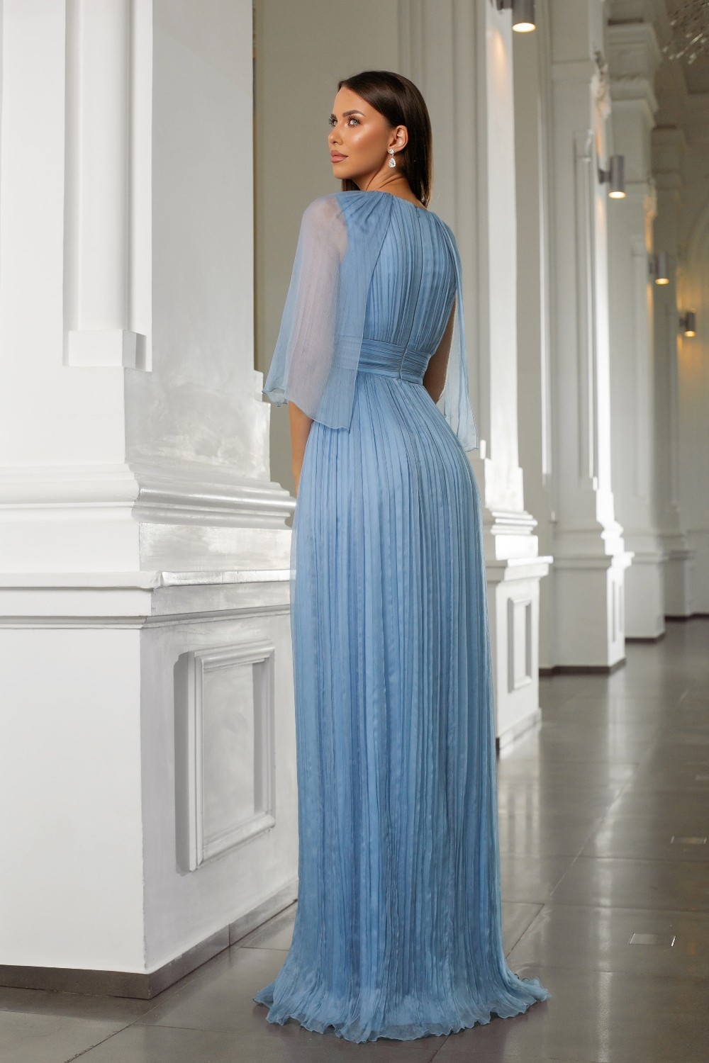 Modelul poartă măsură 40, dimensiuni model: 1,74 cm înălțime, 88 cm bust, 63 cm talie, 94 cm sold