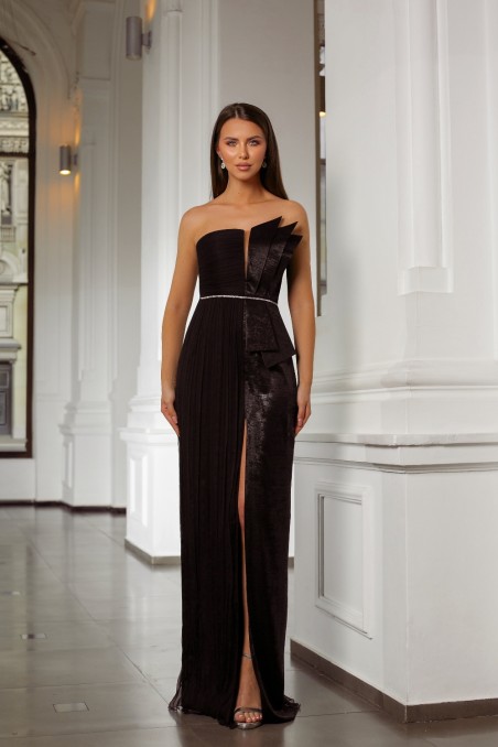 Modelul poartă măsura 40, dimensiuni model: 1,74 cm înălțime, 88 cm bust, 63 cm talie, 94 cm sold