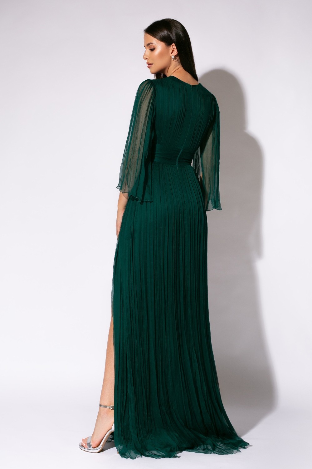 Modelul poartă măsură 40, dimensiuni model: 1,74 cm înălțime, 88 cm bust, 63 cm talie, 94 cm sold