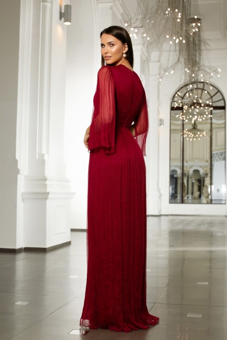 Modelul poartă măsură 40, dimensiuni model: 1,74 cm înălțime, 88 cm bust, 63 cm talie, 94 cm sold