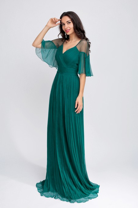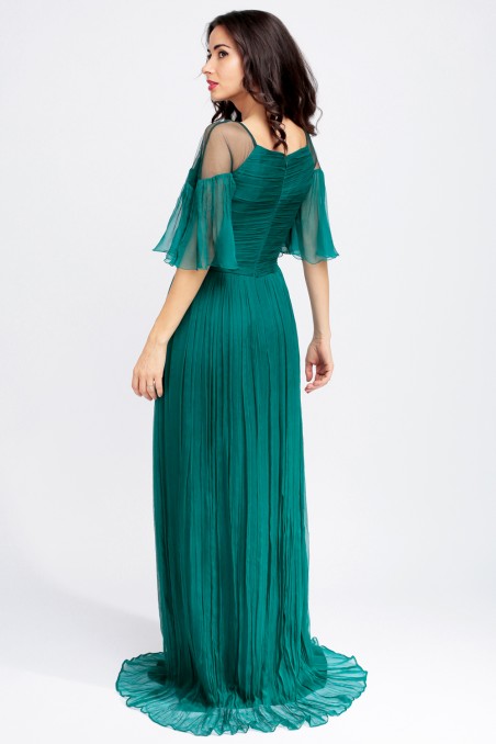 Rochie lunga din matase naturala verde